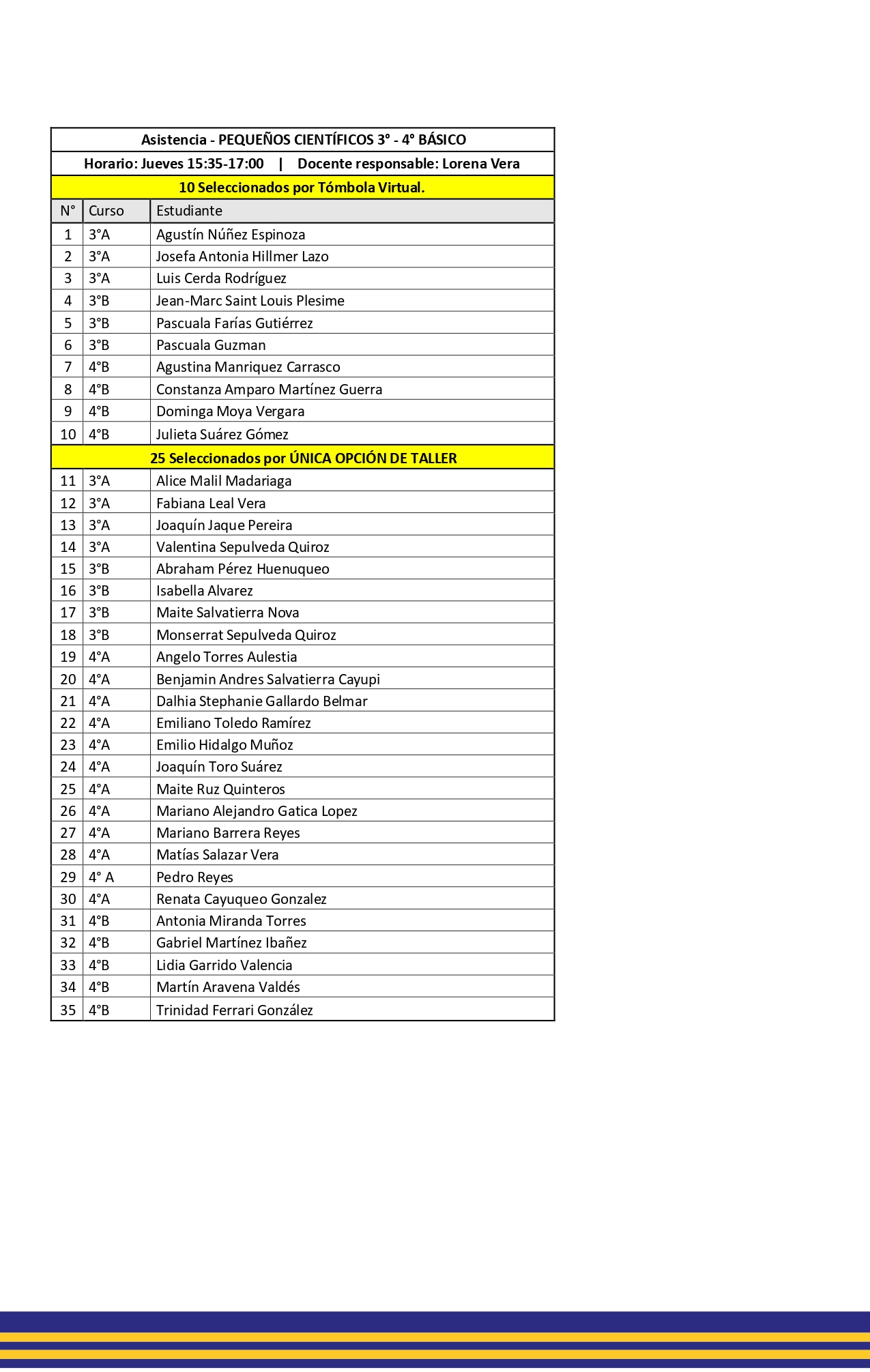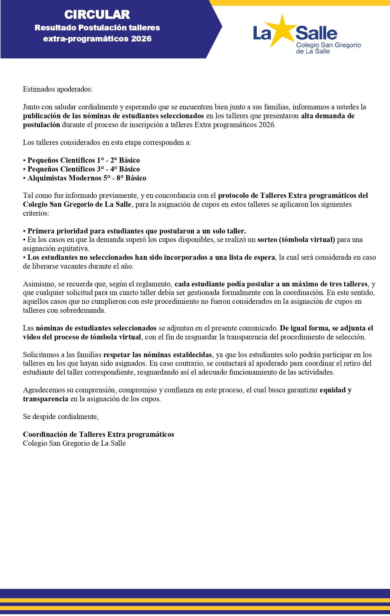 » Resultado Postulación Talleres Extra Programáticos con alta demanda